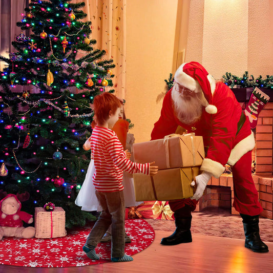 48 Inches Christmas Tree Skirt with 3D Snowflake for Xmas Tree Holiday Party Decorations (Red)