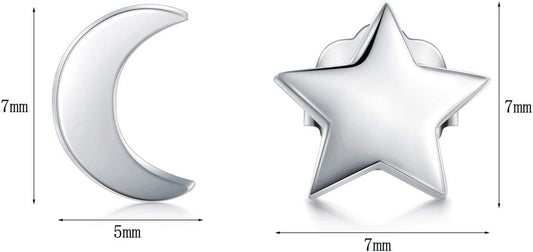925 Sterling Silver Stud Earrings, Crescent Moon, Star, Sun High Polish Tarnish Resistant Earrings