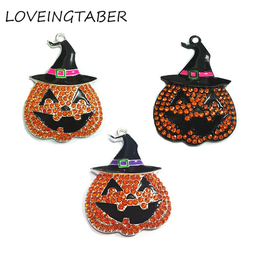 ( Choose Color First ) 47Mm*35Mm 10Pcs/Lot Pumpkin with Witch Hat Rhinestone Pendants for Halloween Jewelry