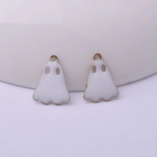 30Pcs 11*14.5Mm Copper Both Side Enamelled Ghost Charms Pendant Diy Halloween Jewelry Accessories