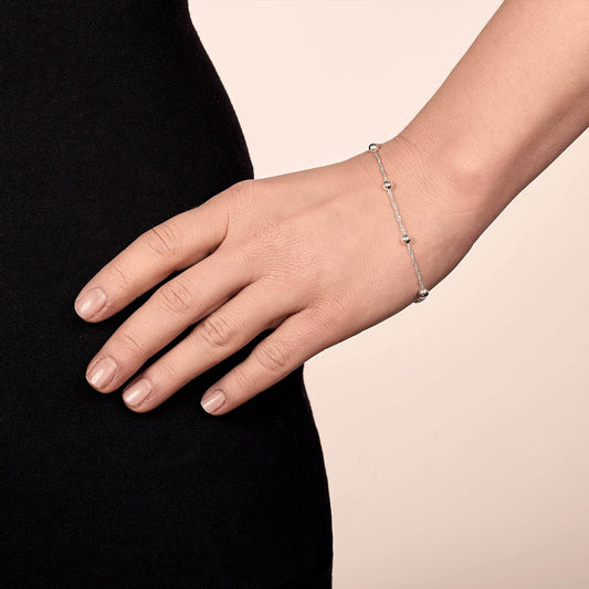 925 Sterling Silver 1.4 Singapore Chain Bracelet Size with 4 Mm Ball Beads 7" 7.5" In